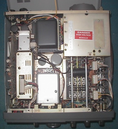 FT-101Zシリーズ 旧型のカウンター 真ん中に見える四角い部品がカウンターでラス穴があいている上蓋を右側へ展開しました。 原理は簡単で本体のプリミックスユニット(バンドパスフィルター)の出力をカウントして表示しています。 カウンターはディスクリートICのプリセッタブルディケードカウンターをシリーズにして使っておりモードに応じてプリセットする数値を変えています。 プリセット数値は LSB 91.0140, USB 91.0110, CW 91.0117 となっています。 |